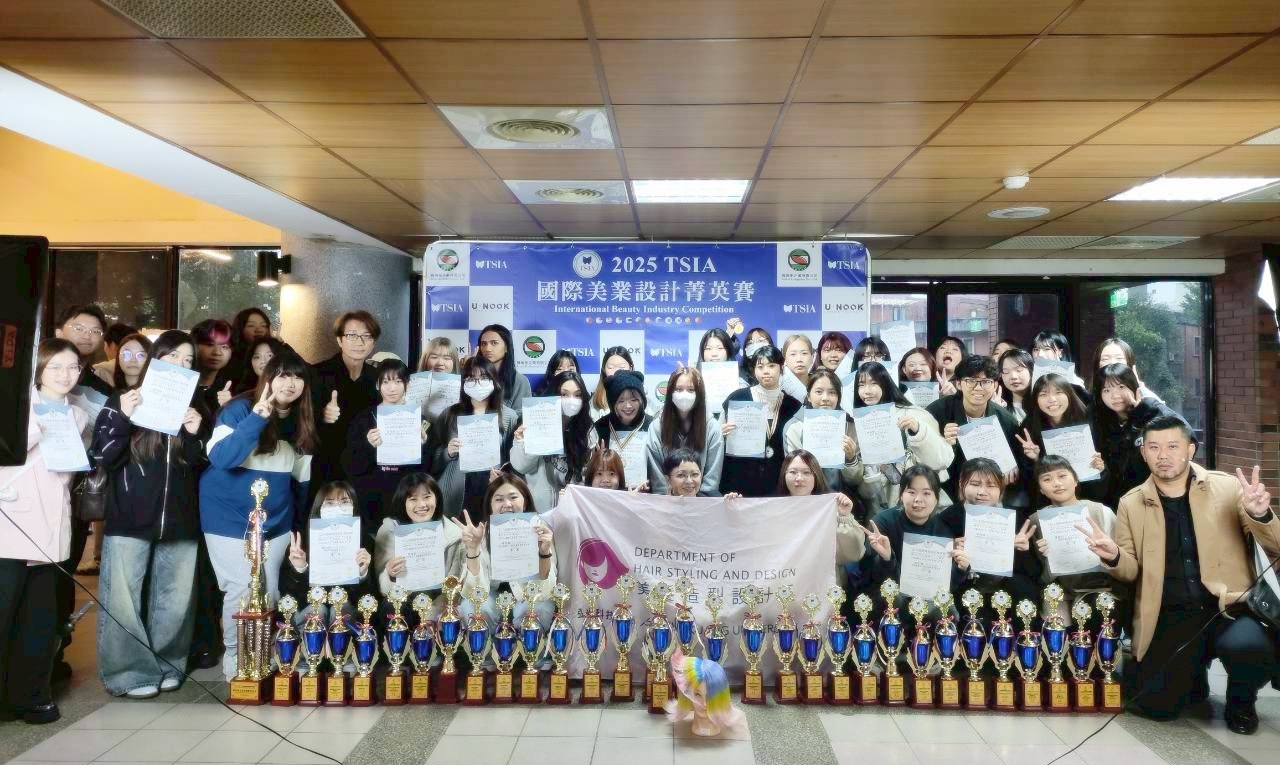 文化設計與行銷系、美髮造型設計系、化妝品應用系學生參加「2025 TSIA 國際美業設計菁英賽」,分別勇奪5個冠軍、13個冠軍、9個冠軍,總共奪得27座冠軍佳績。此項比賽匯聚亞洲各國選手,現場展出及參賽作品超過上千件,本校還獲得美髮類、美容類、文創類、多媒體類總冠軍。