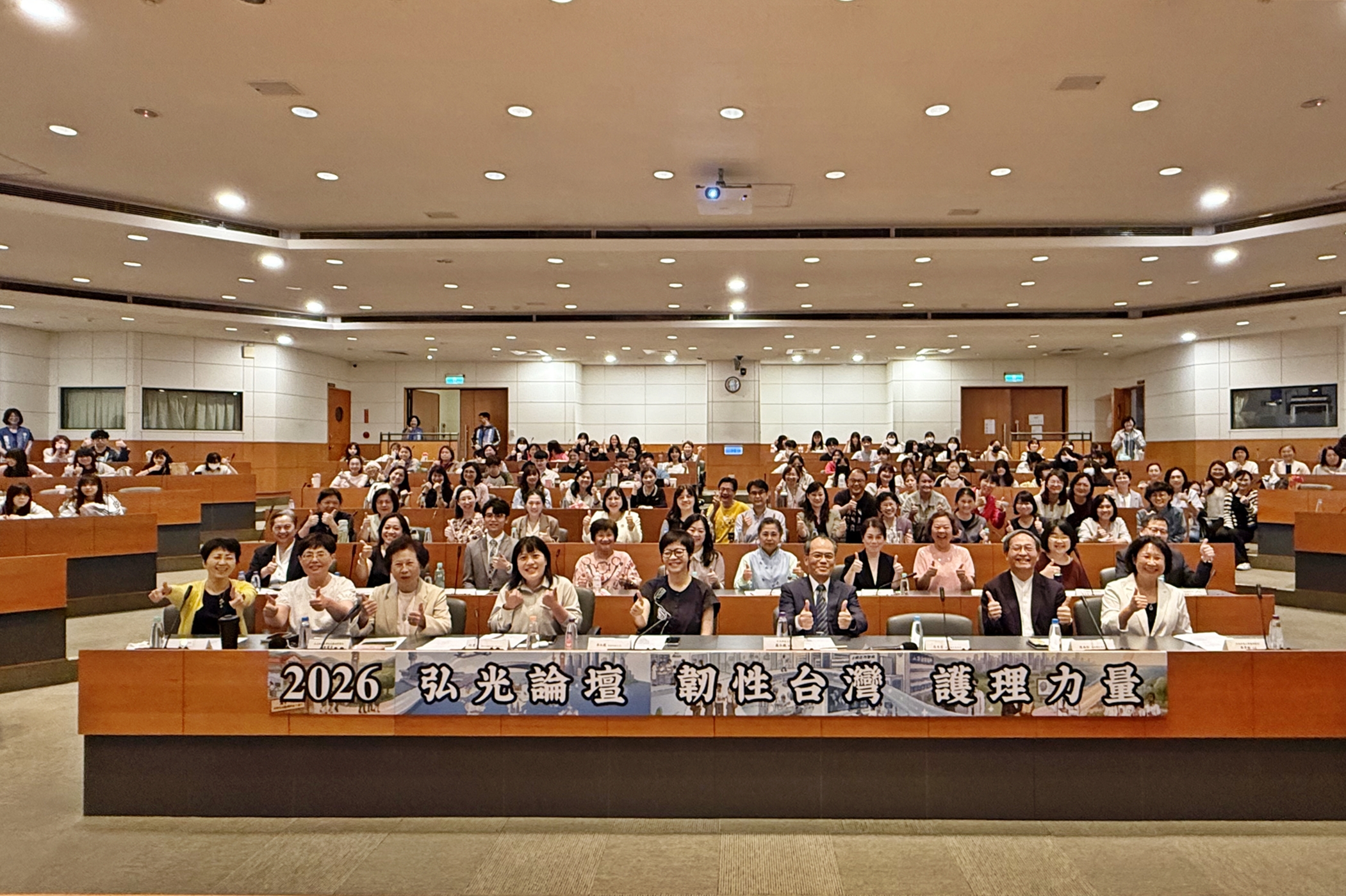 護理學院與校友總會於4月17日,舉辦「韌性台灣、護理力量」護理論壇,由校長蘇弘毅、衛生福利部護理及健康照護司司長蔡淑鳳共同揭開序幕,邀請中部地區醫事機構及公會代表共同發表「支持韌性台灣」護理行動宣言,展現產、官、學界攜手守護台灣健康的決心。