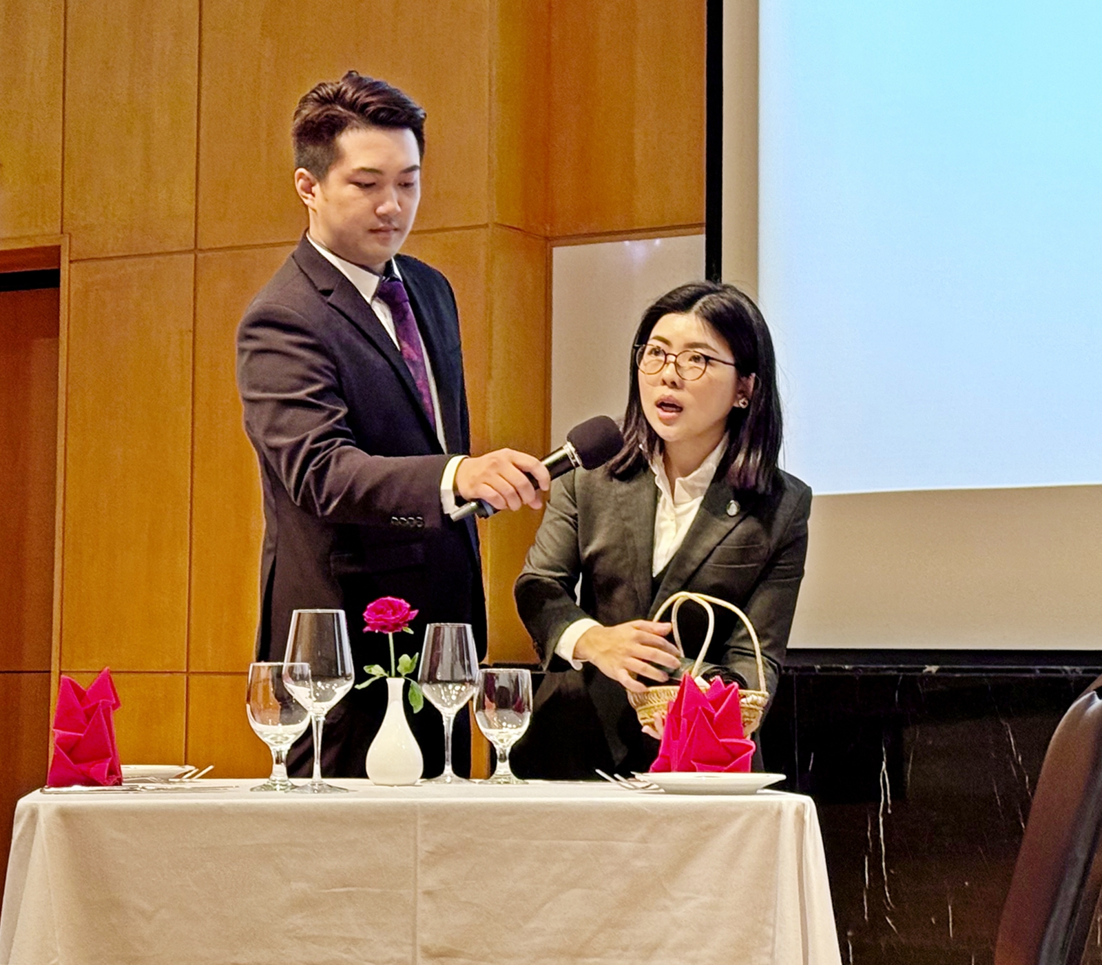 餐旅管理系於11月13日邀請新加坡米其林三星餐廳Odette首席侍酒師劉家旻(Lesley Liu),分享國際侍酒專業的深度視野。講座同時邀