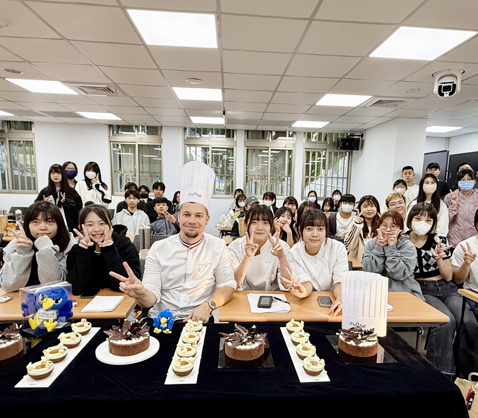 國際處與國際餐旅學院於11月7日舉辦法國雷諾特廚藝學院說明會及法式甜點示範課程。說明會讓餐旅管理系、食品技學生,了解海外實習與國際交流機會;