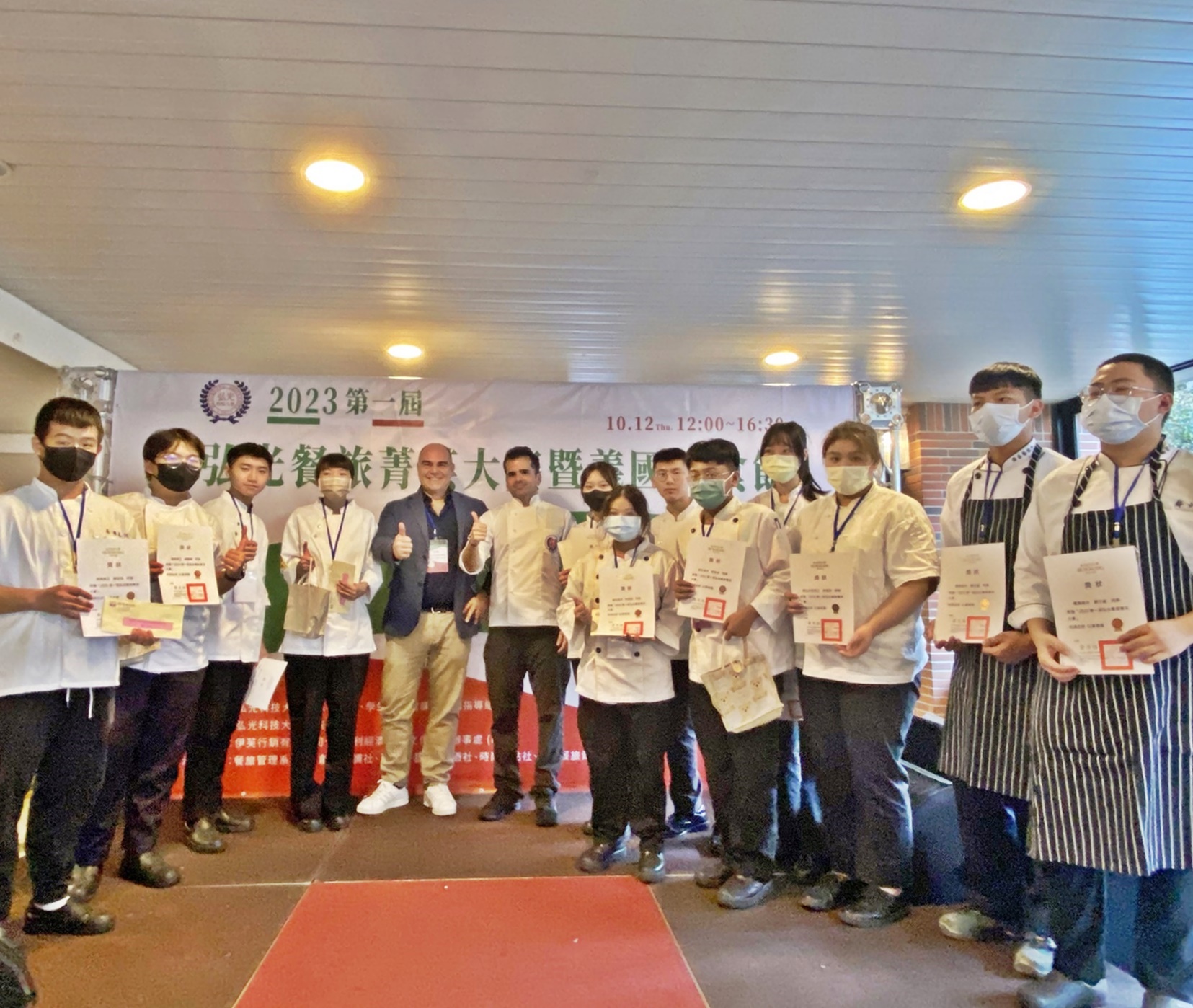 餐旅管理系與義大利經濟貿易文化推廣辦事處 (ITA)、伊芙行銷有限公司,於10月12日共同舉辦「2023第一屆弘光餐旅菁英大賽暨義國美食節」