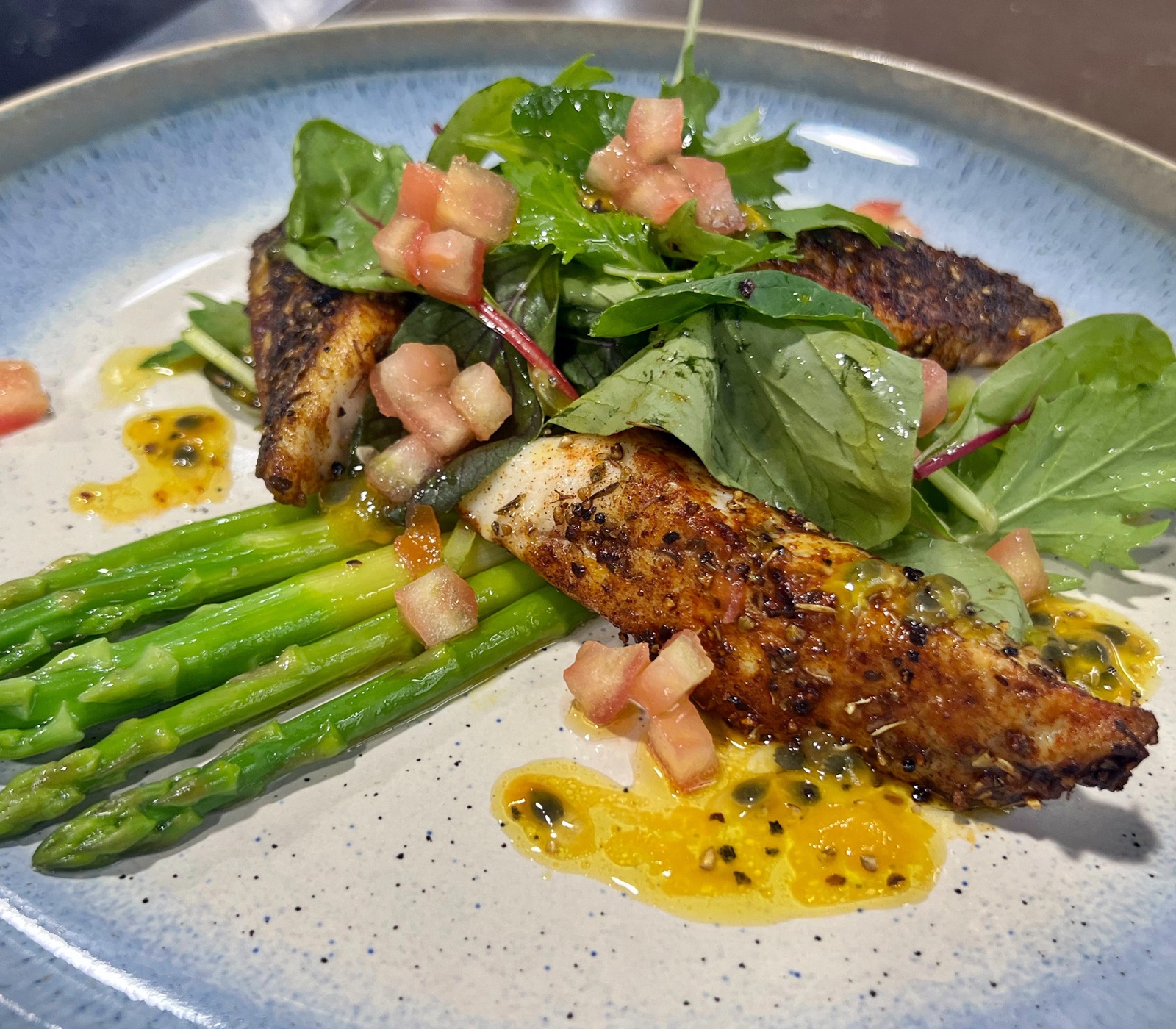 文創系深耕外埔串資源與餐旅展開跨域合作,在餐旅系主任吳胤瑱帶領西餐廚藝社等五大社團,運用外埔食材設計一系列餐點從前菜、主菜、點心、調酒。10