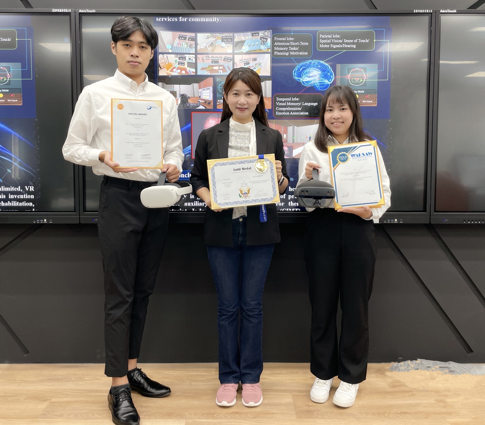 智慧科技應用系林佩蓉老師帶領的研究團隊,以虛擬實境復健訓練系統之專利作品,獲得2022年美國國際發明展金牌、2022第16屆波蘭華沙國際發明