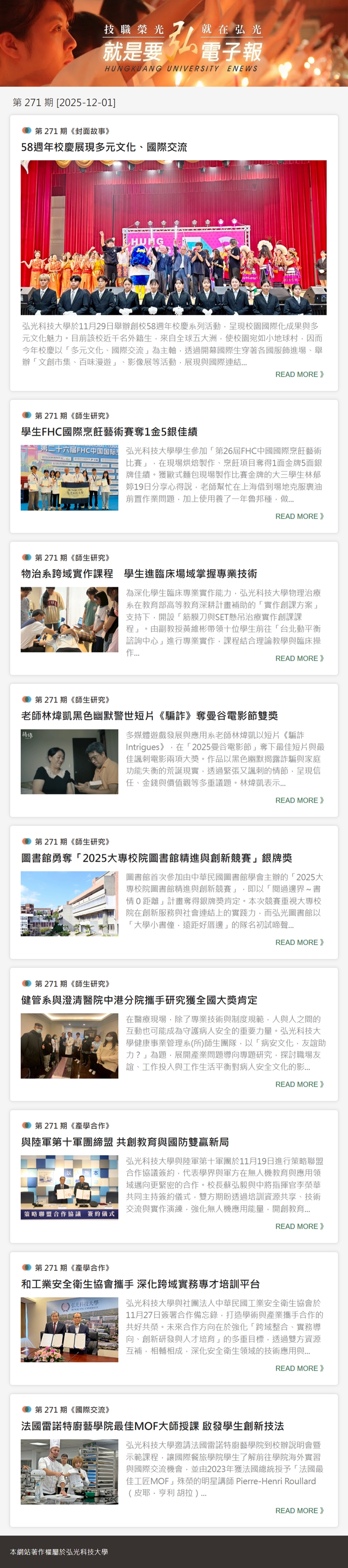 【就是要弘】第271期電子報於114年12月01日出刊,欲閱讀詳細內容請點進連結:https://epaper.hk.edu.tw/e_paper/e_paper.php