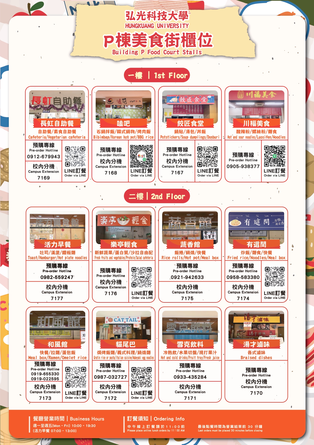每日中午線上訂餐請於11:00前訂購。