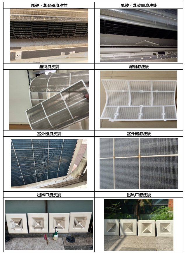 1.校區冷氣維護清洗保養由總務處發包之空間冷氣,廠商依公告時程至單位各空間進行維護清洗保養,本組檢附冷氣清洗前、後之圖示,供參閱!