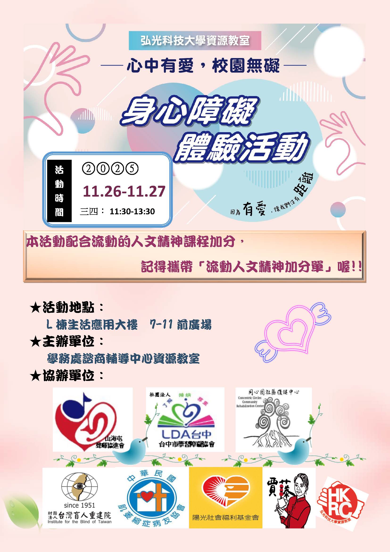 邀請您一起走進他人的世界,用體驗理解,用行動關懷,讓我們攜手打造一個更友善、更包容的校園。