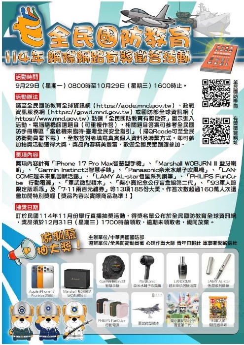 「全民國防教育網際網路有獎徵答活動」說明如下: