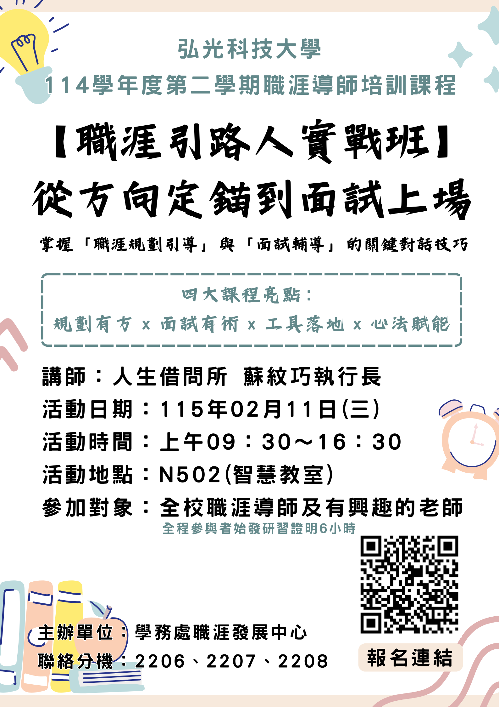 如有問題請撥2206-2208(職涯中心),謝謝。