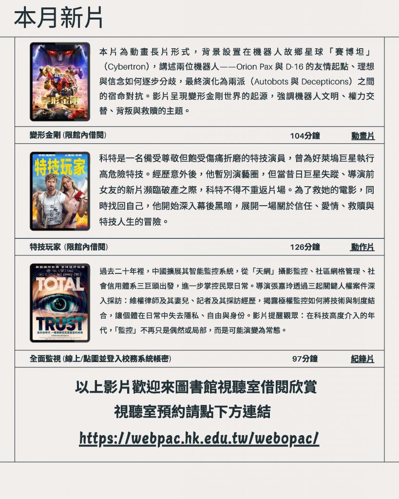 【資源推廣】11月精選新片來囉!歡迎點選連結或至圖書館借閱欣賞~