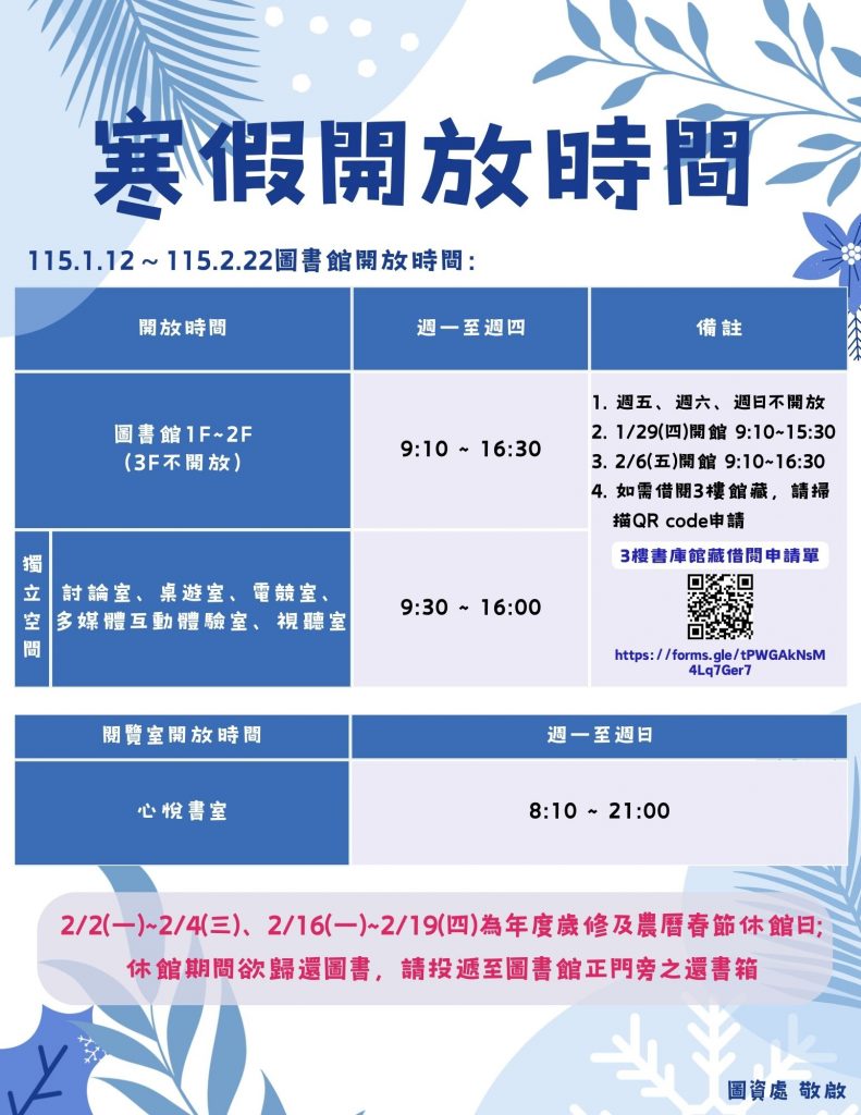 【弘光好厝邊】圖書館寒假限定!提供鄰近社區民眾多元休憩空間~~