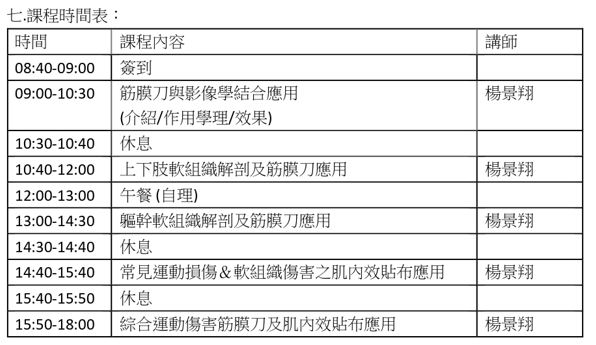 複合式動態筋膜刀及肌內效貼布培訓課程將結合超音波影像學進行肌肉與筋膜活動的分析並解析筋膜刀執行時的力道及深度與特製肌內效貼布,針對不適的部位進行姿勢調整及肌肉誘發,更進一步了解筋膜刀使用上的正確性及肌內效貼布的使用方式。