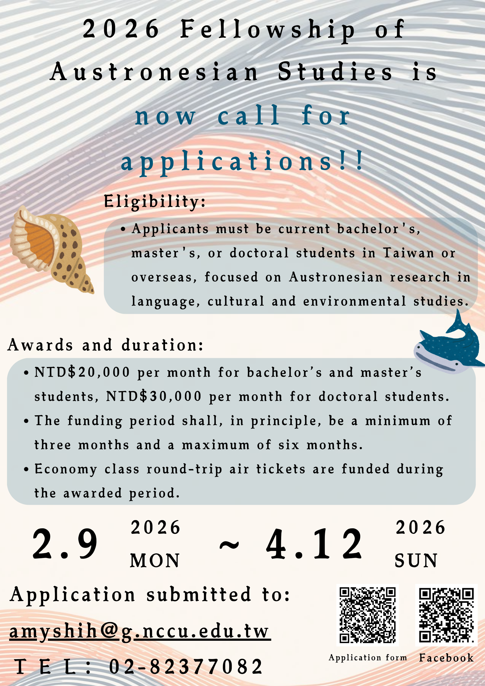 主 旨: 檢送本校南島研究講座辦公室「2026年第一梯次南島研究獎學金」相關資訊,請惠予協助公告,請查照。