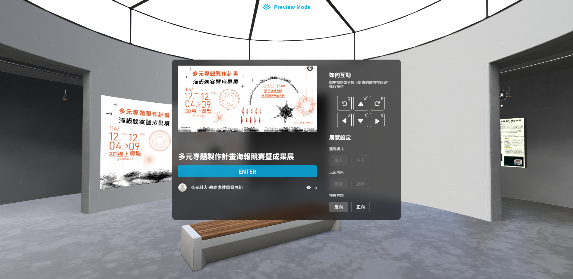 ※本次競賽增設人氣獎,活動期間內請至Virsody(3D線上展覽平台)瀏覽各組作品,並於Google表單進行投票。